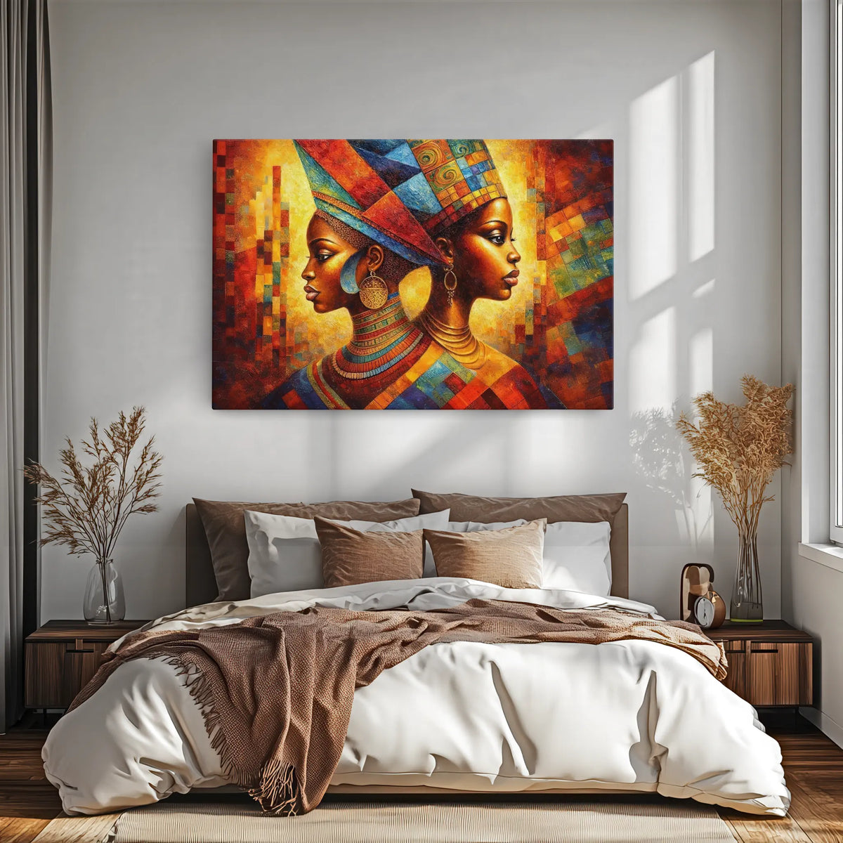 What sets this artwork apart is not just its visual appeal but the emotional connection it fosters. The vibrant colors and intricate details invite viewers to explore and interpret the story behind the queens, sparking imagination and conversation. It's more than just a piece of art; it's an experience that enriches your environment and uplifts your spirit.