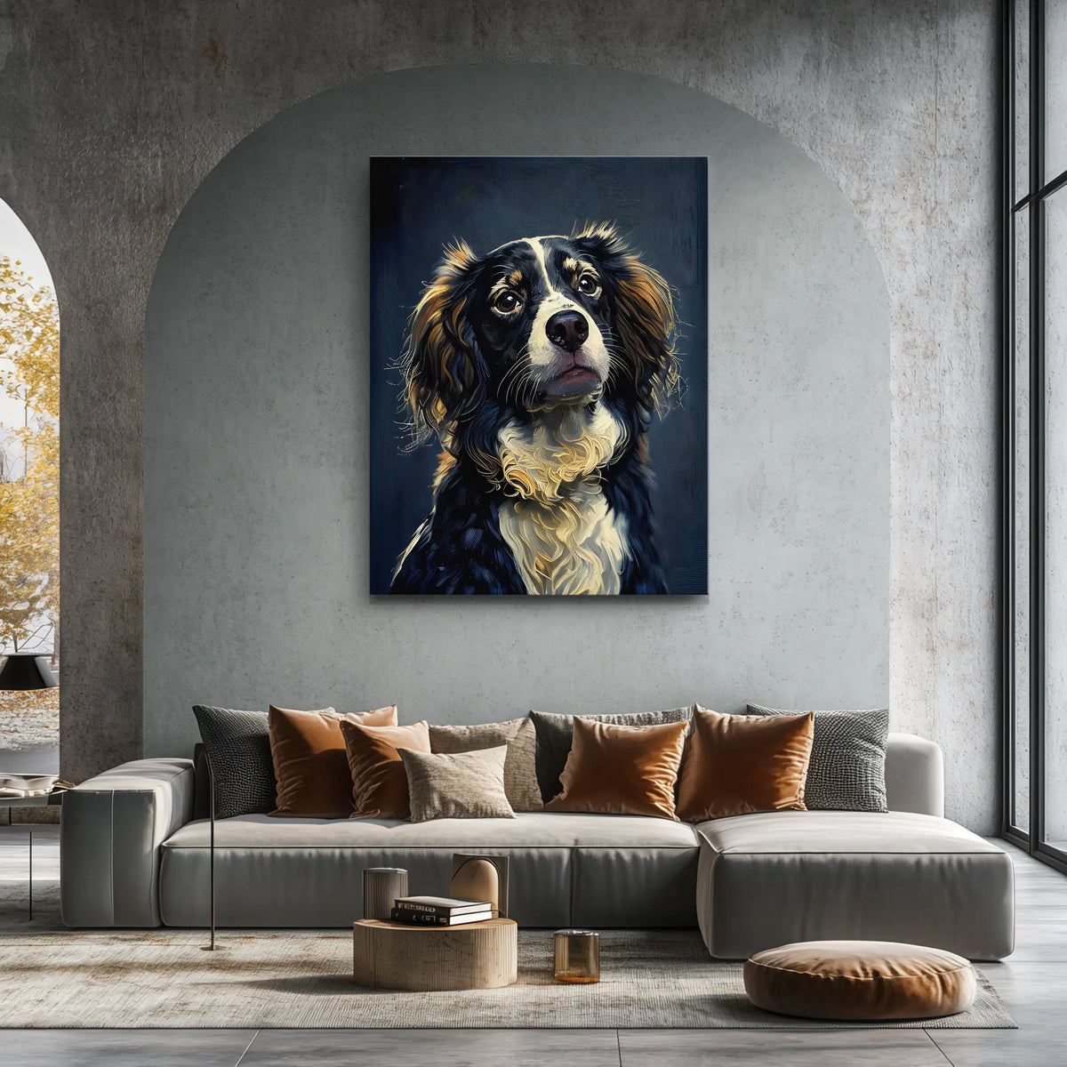 Experience art that speaks to your heart. This isn't just any dog portrait; it's a high-quality Giclée print, ensuring every subtle brushstroke and vibrant color is reproduced with astonishing accuracy. We use museum-quality 380gsm to 410gsm polycotton canvas, stretched taut over a sturdy 1.5-inch pine wood frame. This means your print will maintain its brilliant appearance for years to come, resisting fading and damage. For your convenience, it comes ready to hang with a pre-attached back wire, allowing for an instant upgrade to your décor. Prefer a more traditional look? We also offer this amazing artwork as a framed print, using archival museum Fine Art Matte Paper for that classic gallery feel.