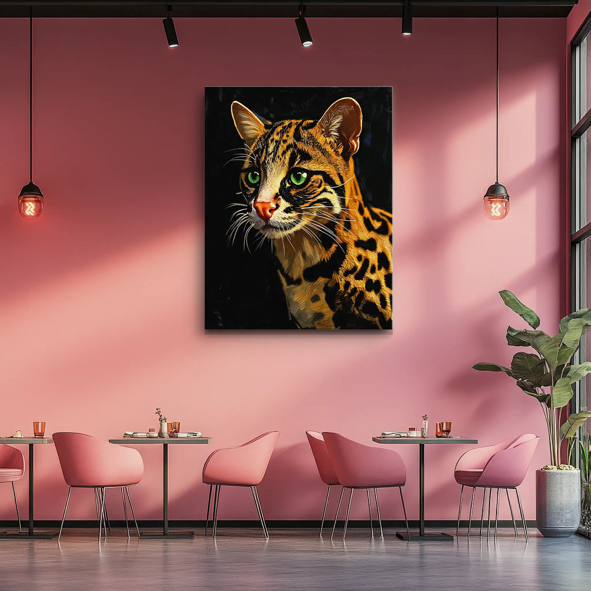 Wild Ocelot Portrait Giclée Print 456060: Unleash Untamed Beauty & Captivate Your Space with Striking Visuals! Prepare to be mesmerized...