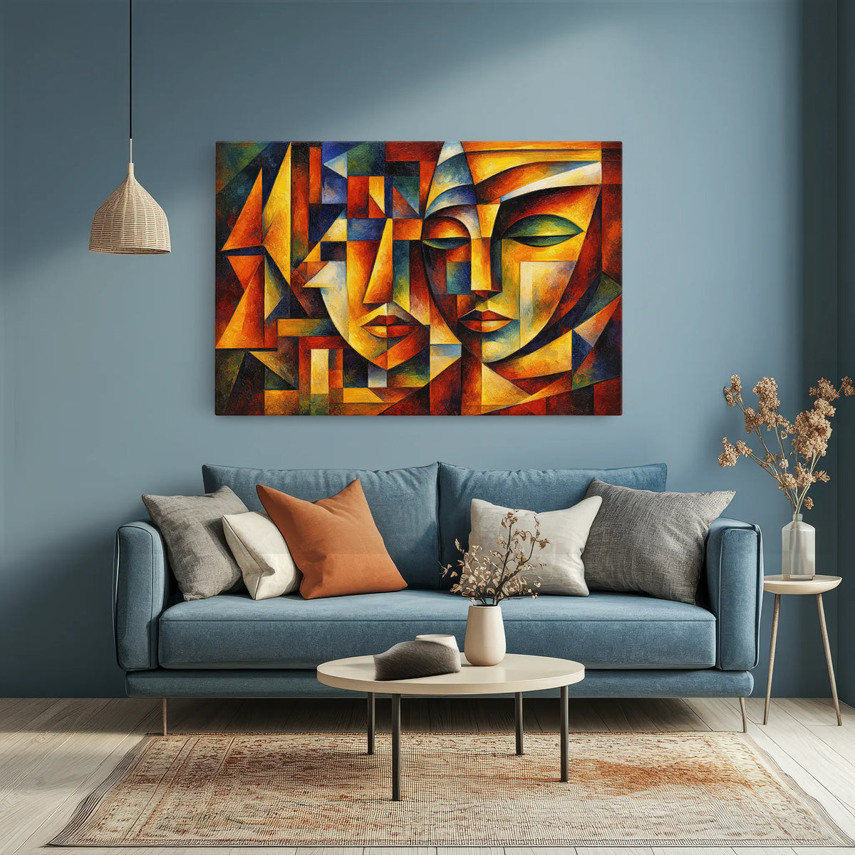 Immerse yourself in the world of abstract art with the Dramatic Contrast and Depth Faces Giclée Print 329024. This stunning piece captures the essence of modern creativity, blending vibrant colors and geometric shapes to create a mesmerizing visual experience. The artwork features two abstract faces intertwined in a dance of color and form, evoking emotions of mystery and intrigue.