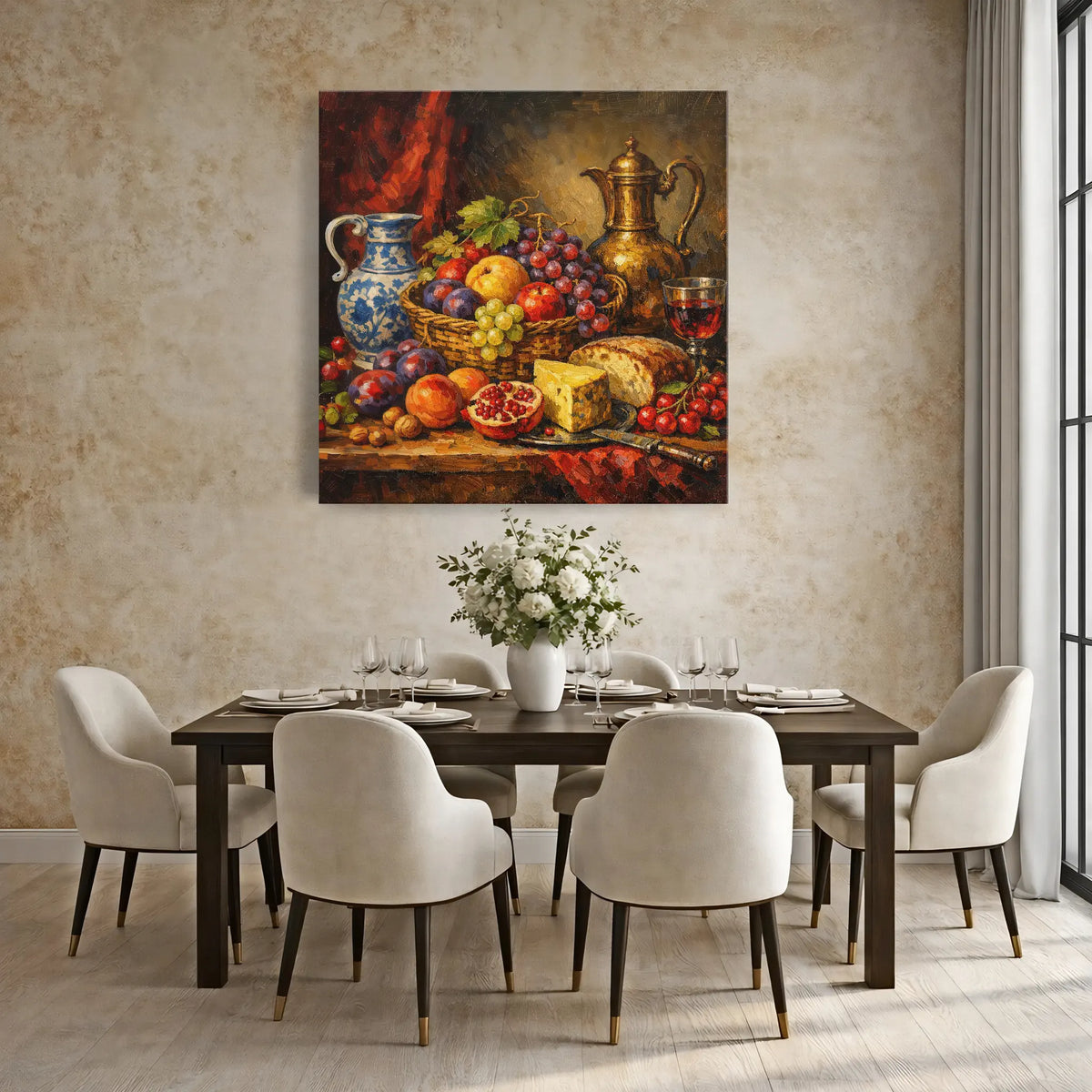 What sets this artwork apart is its ability to evoke emotion and create a sense of tranquility. The rich hues and textures invite you to pause and appreciate the beauty of everyday moments. Whether displayed in your dining room, kitchen, or living area, this print will inspire conversation and admiration from guests.