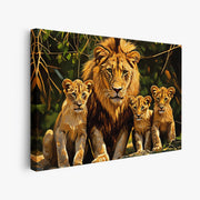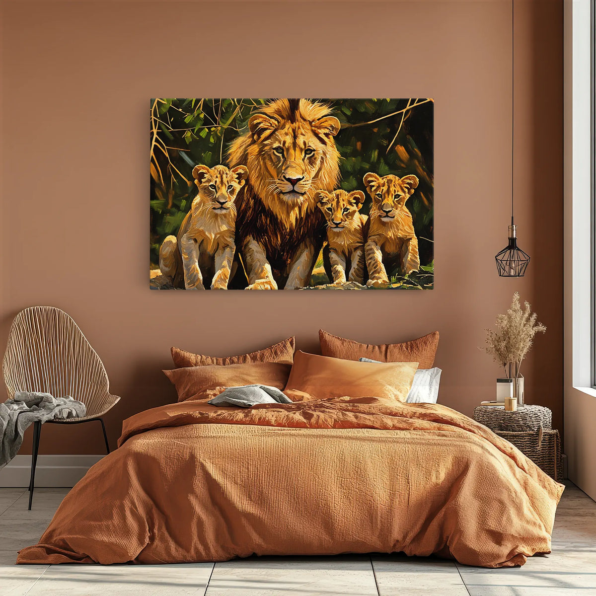 Step into the heart of the wild with this breathtaking art piece, 'Into the Green Lions Pride Advances Giclée Print 321019'. This amazing artwork captures a truly intimate and powerful moment: a majestic male lion advancing alongside his adorable cubs, nestled within a vibrant green habitat. It’s more than just a picture; it’s an invitation to feel the raw strength, profound family bonds, and untamed spirit of nature right within your own space. Imagine the warmth and inspiration this scene will bring to any room, instantly transforming your decor.