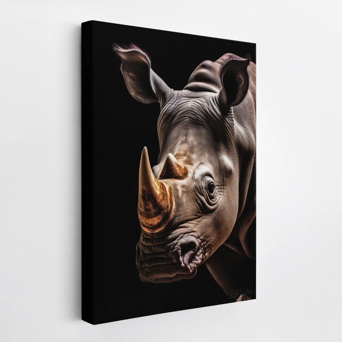 Transform Your Space with the Rhino Portrait Golden Horn Giclée Print 231042