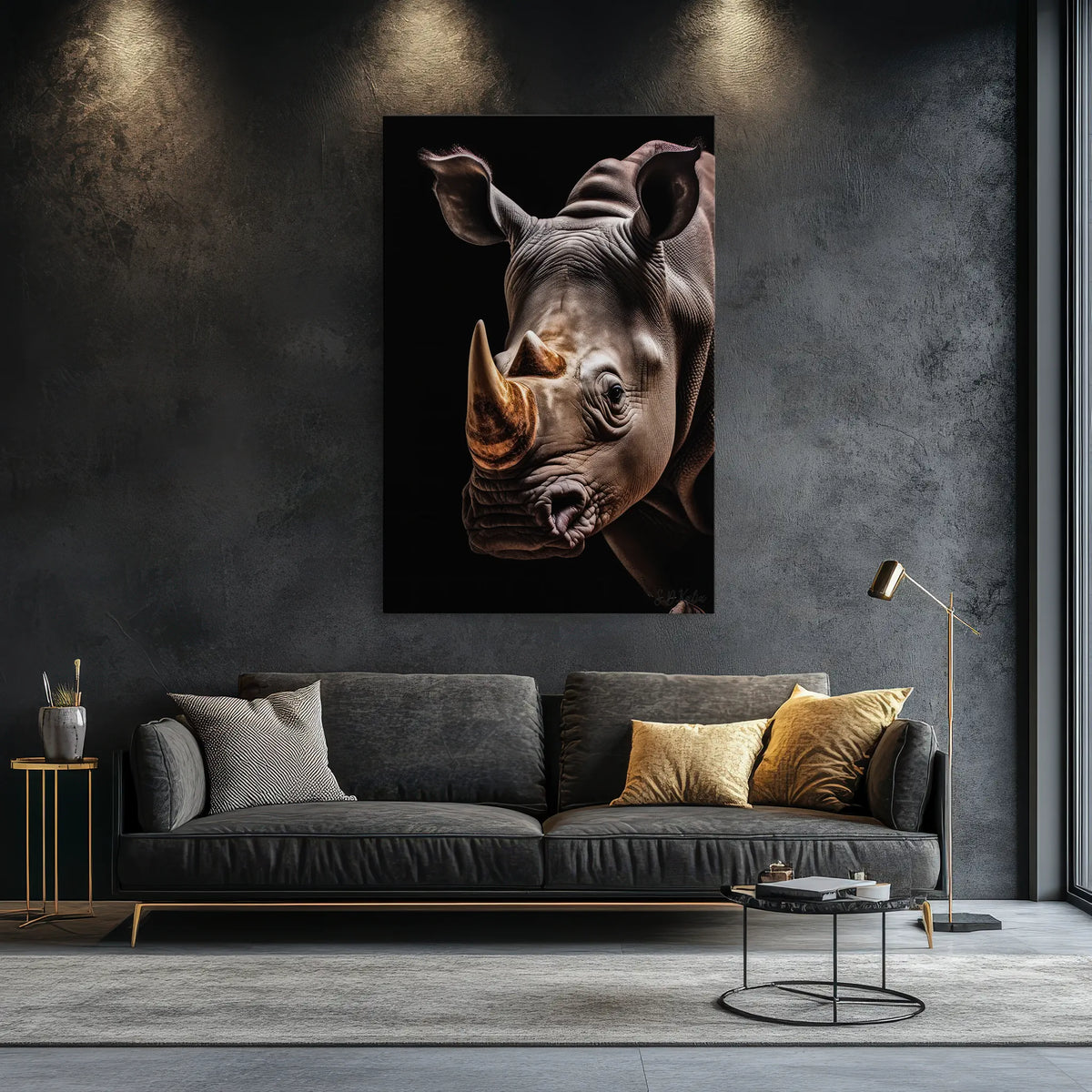 What sets this print apart is its ability to evoke emotion and inspire conversation. The golden horn, a focal point of the piece, symbolizes rarity and value, much like the rhino itself. The intricate details and lifelike portrayal make it an amazing addition to any room, instantly elevating your decor.