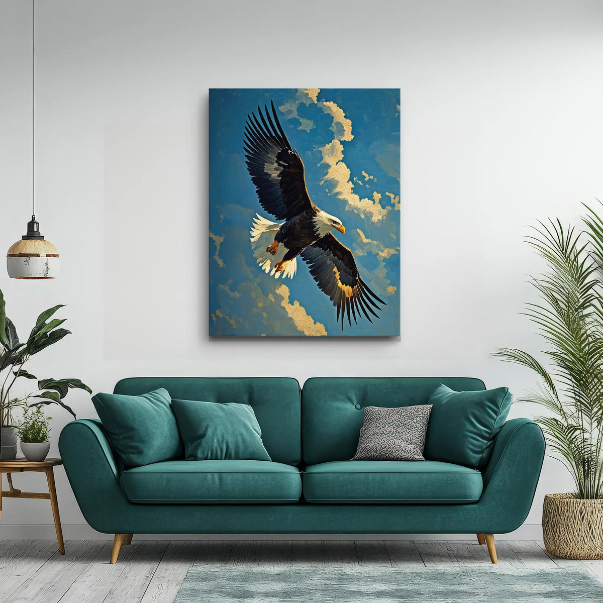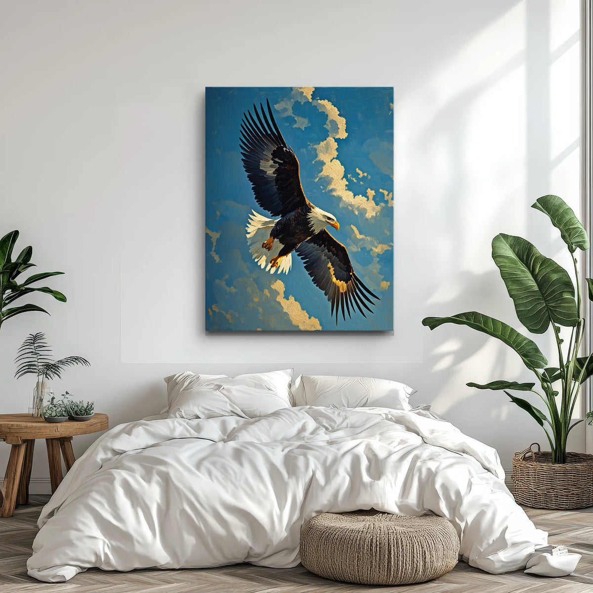 This exclusive artwork not only decorates your wall, it transforms the mood of your room. Place it above a sofa, desk, or bed to create an inspiring “window” into the sky. The bold presence of the bald eagle adds a touch of courage and calm, making it ideal for living rooms, home offices, studies, and creative spaces where you want a daily reminder of focus and freedom.