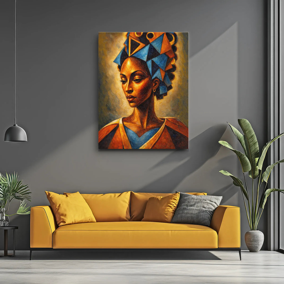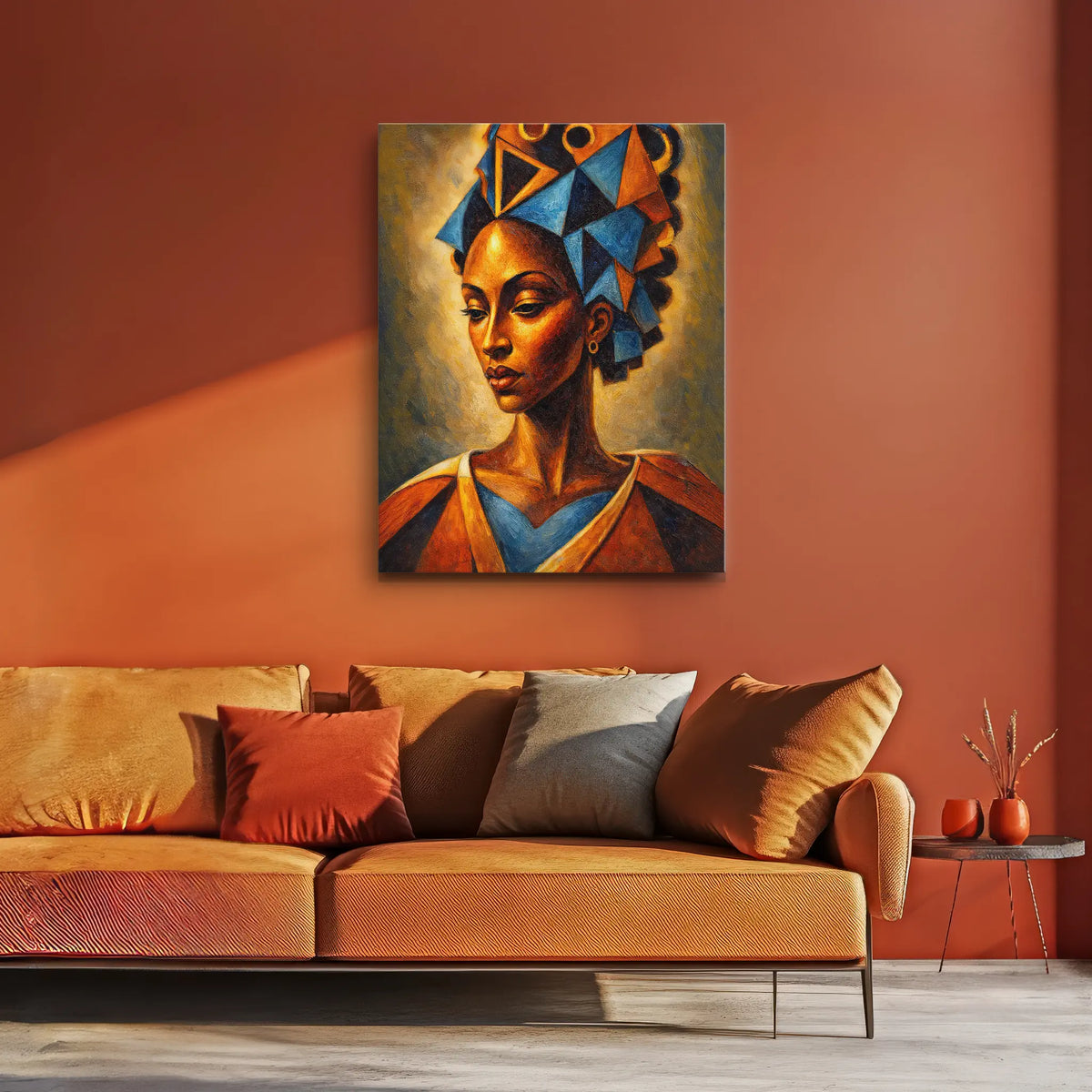 Transform your living space into a gallery of sophistication with the Blue Triangles Golden Light Giclée Prints 459003. This stunning piece of art captures the essence of elegance and creativity, featuring a mesmerizing portrait adorned with geometric shapes in vibrant blue and warm golden hues. The intricate design and rich colors evoke a sense of wonder and admiration, making it a perfect centerpiece for any room.