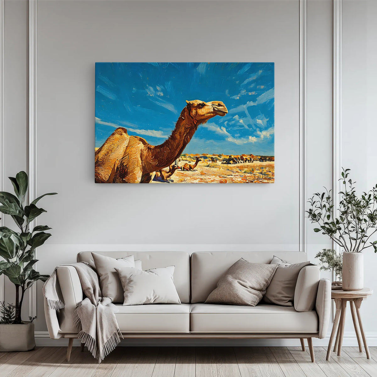 Desert Sentinel Camel Under Wide Skies Giclée Print 321016 - Giclée Stretched Canvas Print / 18ix12in (45x30cm)