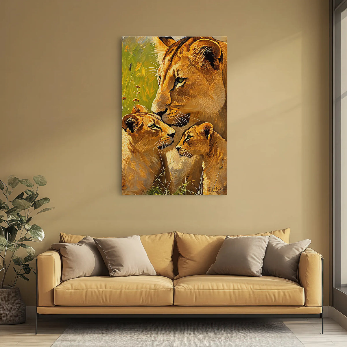 Bring the wild home today. Add the Tender Nuzzle Lioness and Cubs Giclée Print 231076 to your cart and experience the instant transformation of your space. Let the beauty of nature inspire and uplift your everyday life.