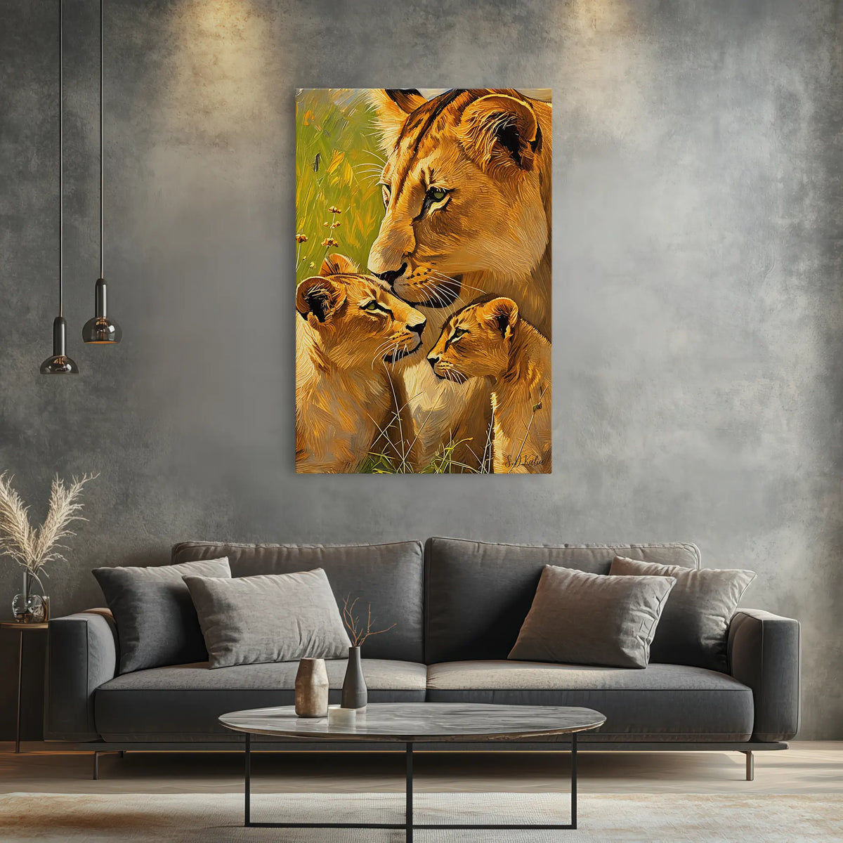 The Tender Nuzzle Lioness and Cubs Giclée Print 231076 is more than just a decorative piece; it's a conversation starter. The emotional connection depicted in the artwork resonates with viewers, evoking feelings of warmth, protection, and love. It's an ideal choice for anyone looking to add a touch of nature's grace to their living space.