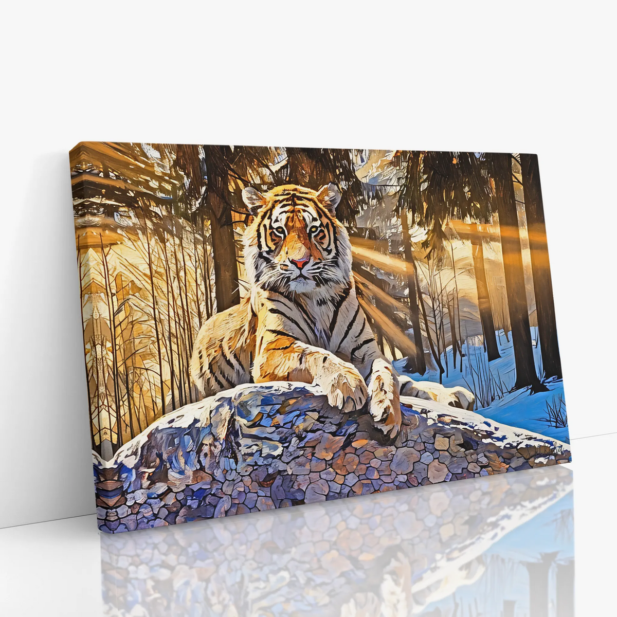 Tiger Winter Woodland Portrait Giclée Print 321013 - Giclée Stretched Canvas Print / 18ix12in (45x30cm)
